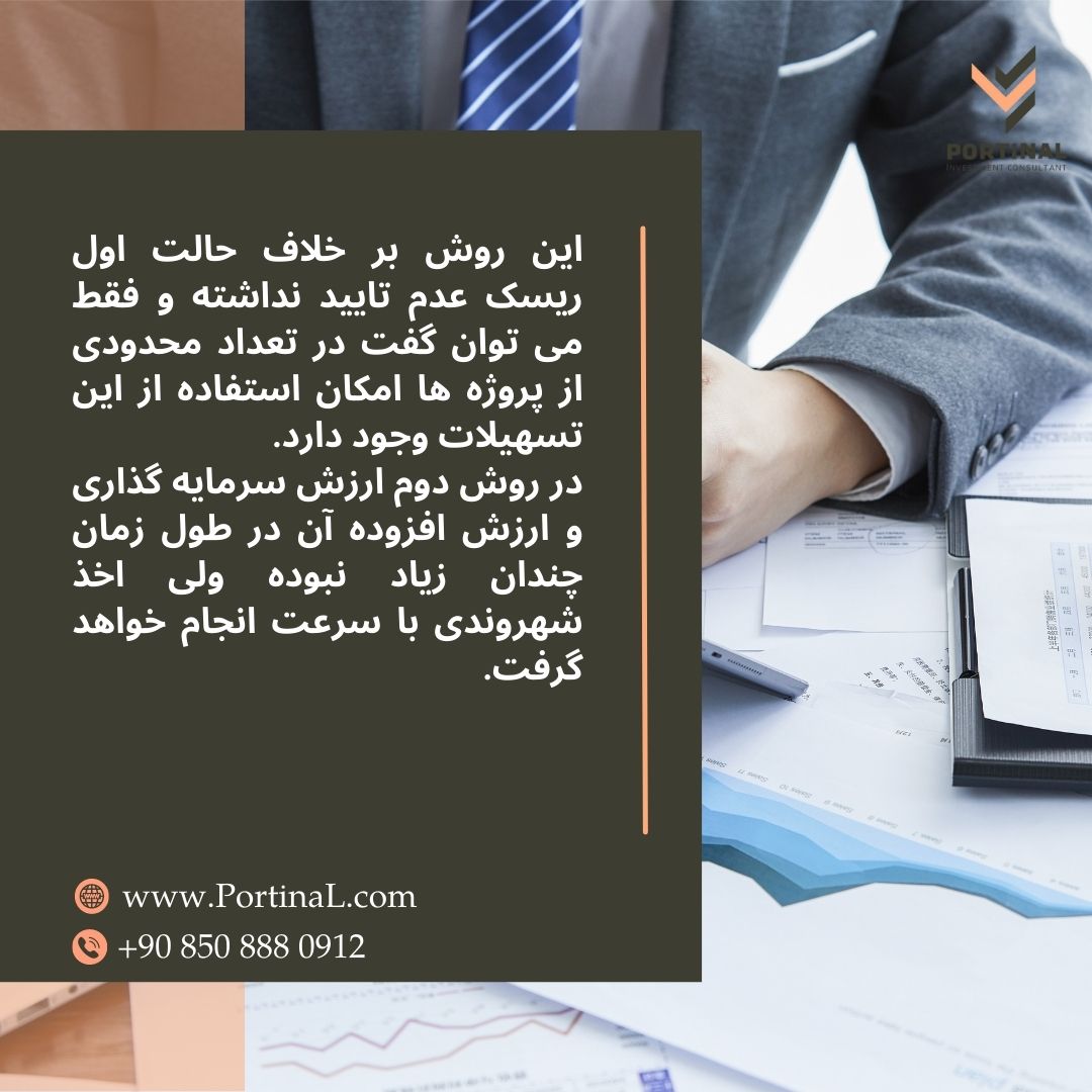 در روش دوم ارزش سرمایه گذاری و ارزش افزوده آن در طول زمان چندان زیاد نبوده ولی اخذ شهروندی با سرعت انجام خواهد گرفت.