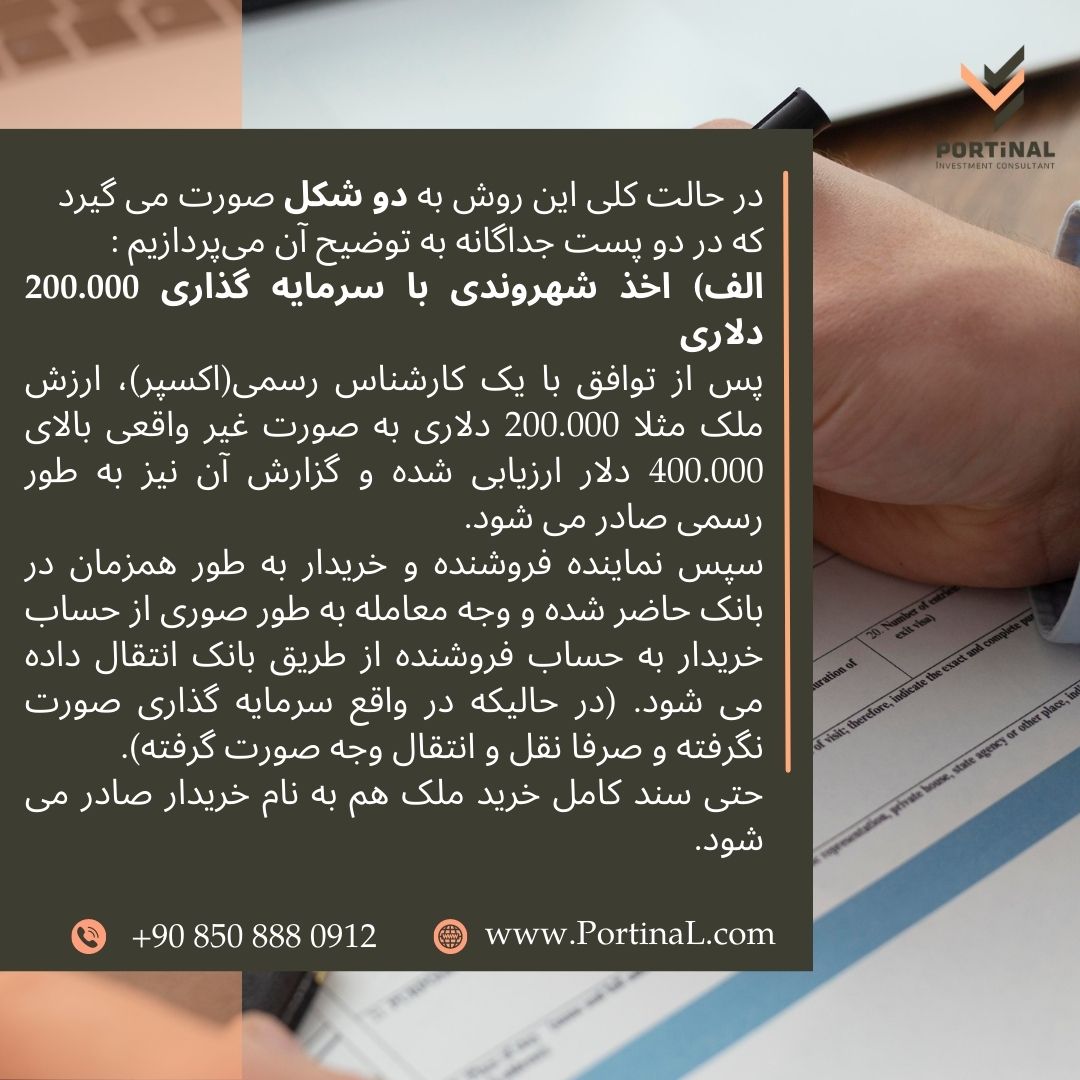 الف) اخذ شهروندی با سرمایه گذاری 200.000 دلاری